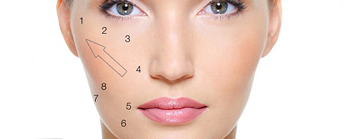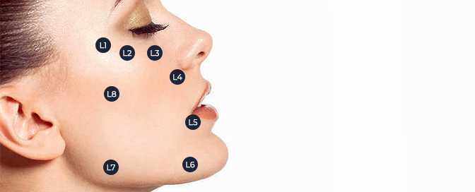 „Karta“ lica slaže se prema 75 točaka podijeljenih prema regijama, od kojih svaka regija ima svoje ključne točke. Startna pozicija i temelj cjelokupnog pomlađivanja lica krije se u 5 točaka regije obraza koje se nadopunjavaju i kombiniraju s točkama jagodica, očiju i brade.