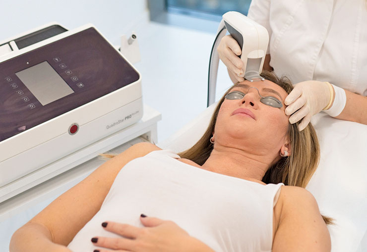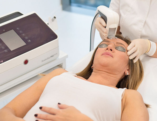 Zur Behandlung der genannten Veränderungen verwenden wir den gelben QuadroStarPRO Laser von Asclepion Laser Technologies, der heute die modernste Technologie darstellt und bei Äderchen, Gesichtsrötungen, Couperose und Rosazea die beste Wahl ist.