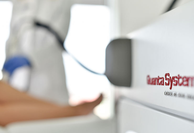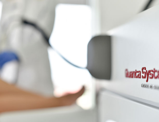 Der Quanta System Duetto MT Evo Laser eignet sich ideal zur Behandlung von Venen und Kapillaren am Körper. Er kombiniert zwei Wellenlängen des Infrarotspektrums und wirkt daher gleichermaßen gut bei kleinen, feinen oberflächlichen Kapillaren wie auch bei tiefen, größeren Gefäßen in und unter der Haut.