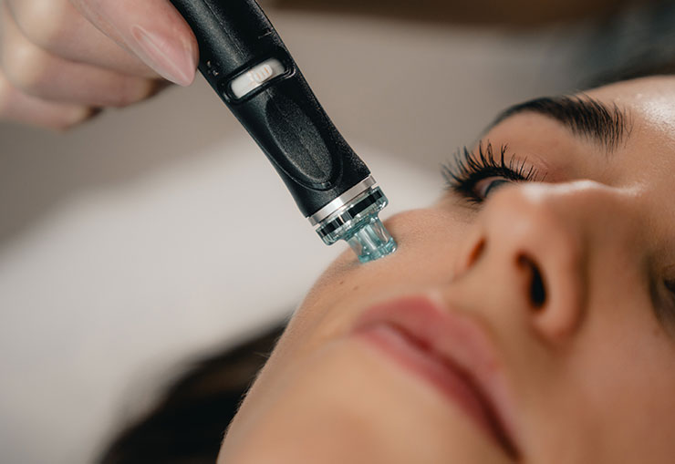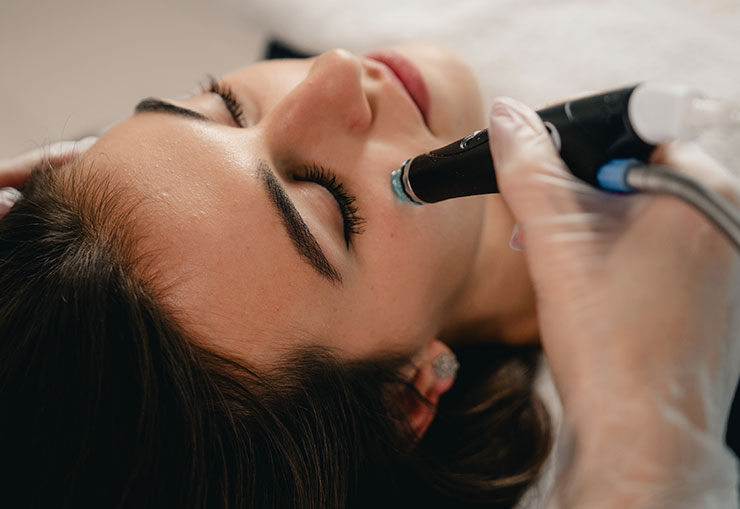 Radiance HydraFacial-Behandlung, bei der die Zugabe des Britenol-Boosters das Auftreten von Hyperpigmentierung reduziert, die durch übermäßige Sonneneinstrahlung oder hormonelle Störungen verursacht wird.